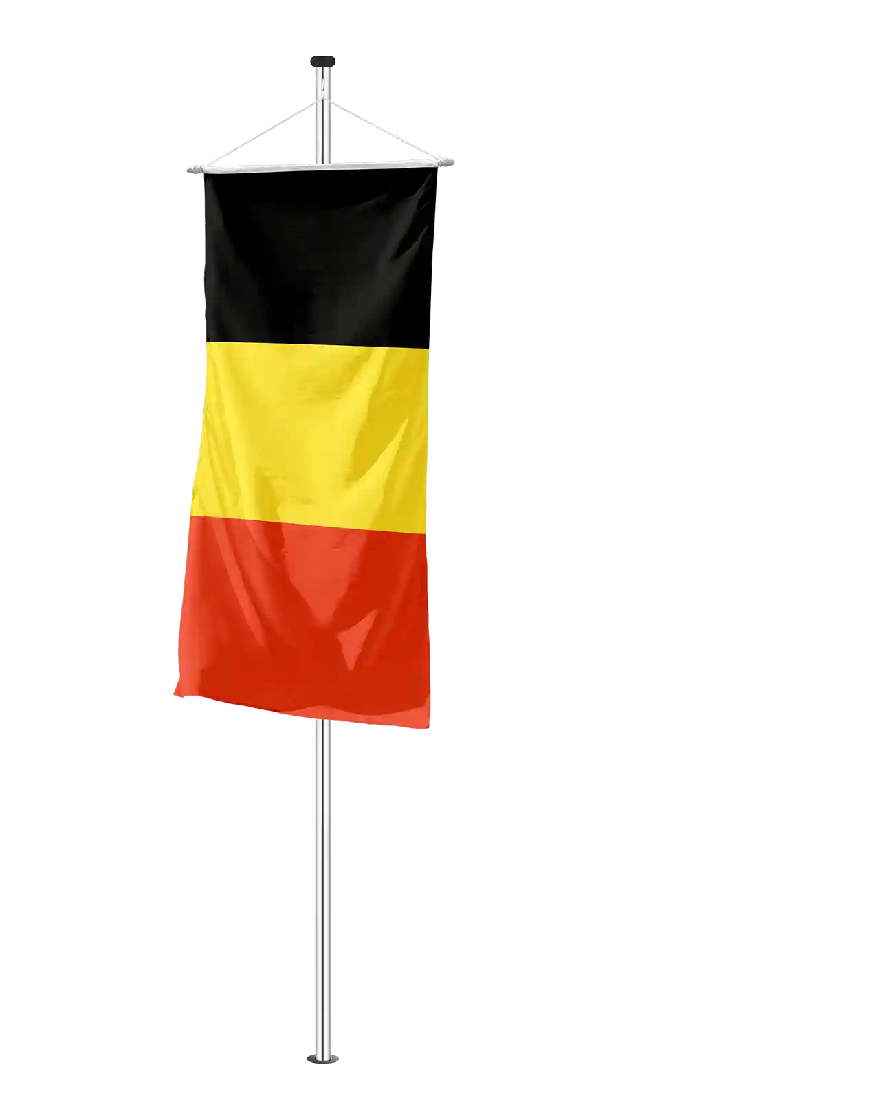 Bannerfahnen stehen für eine besonders ruhige und repräsentative Darstellung. Durch ihre feste Aufhängung bleibt die Nationalflagge auch bei Windstille jederzeit gut sichtbar.
