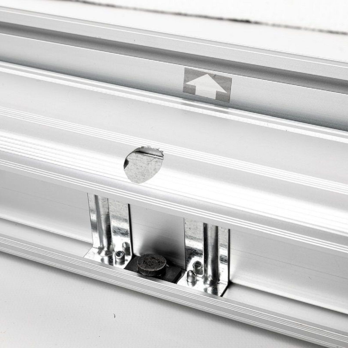 Das leichte Aluminiumgehäuse mit ausklappbaren Füßen sorgt für sicheren Stand. Die moderne Klemmleiste oben und die Mastfixierung mit Gummiknopf ermöglichen einen schnellen, einfachen Aufbau. Die Höhe beträgt ca. 200 cm, kann aber spiralfederbedingt leicht variieren. Erhältlich in 80, 85 oder 100 cm Breite.