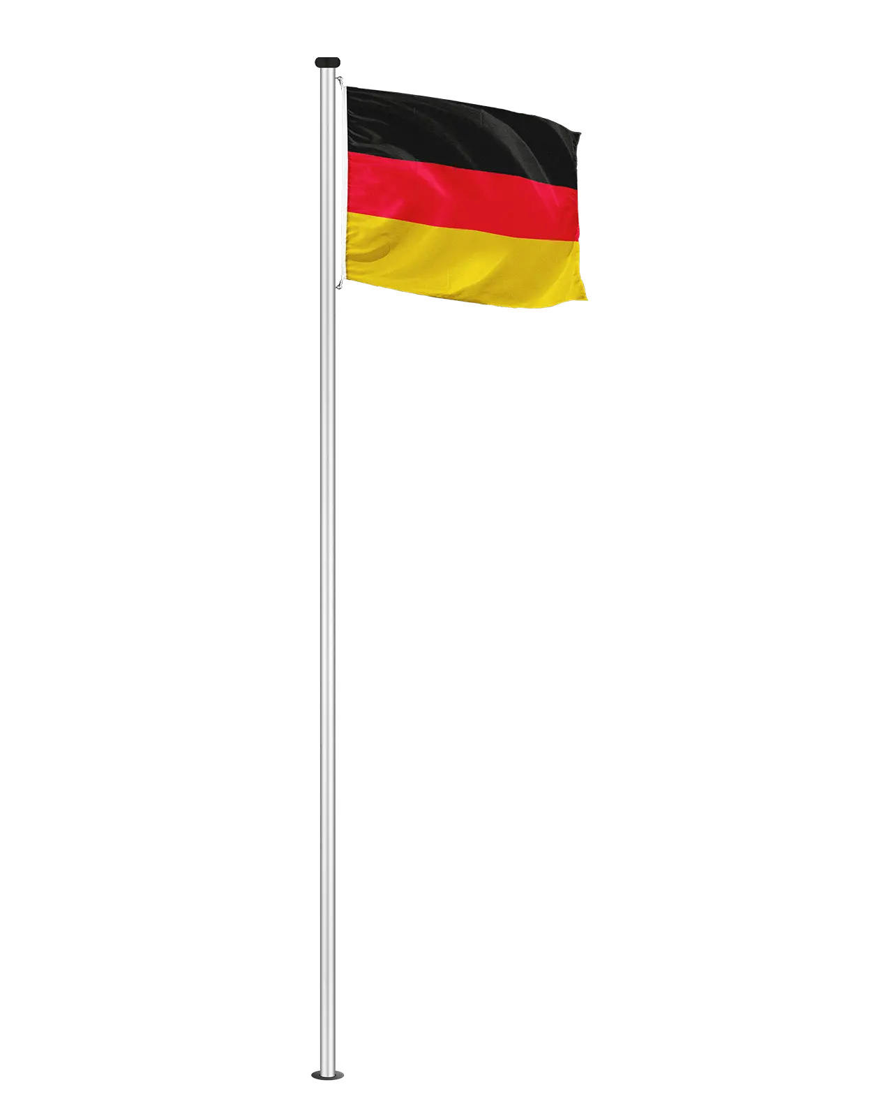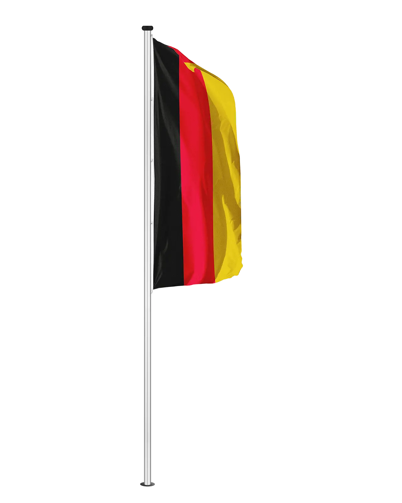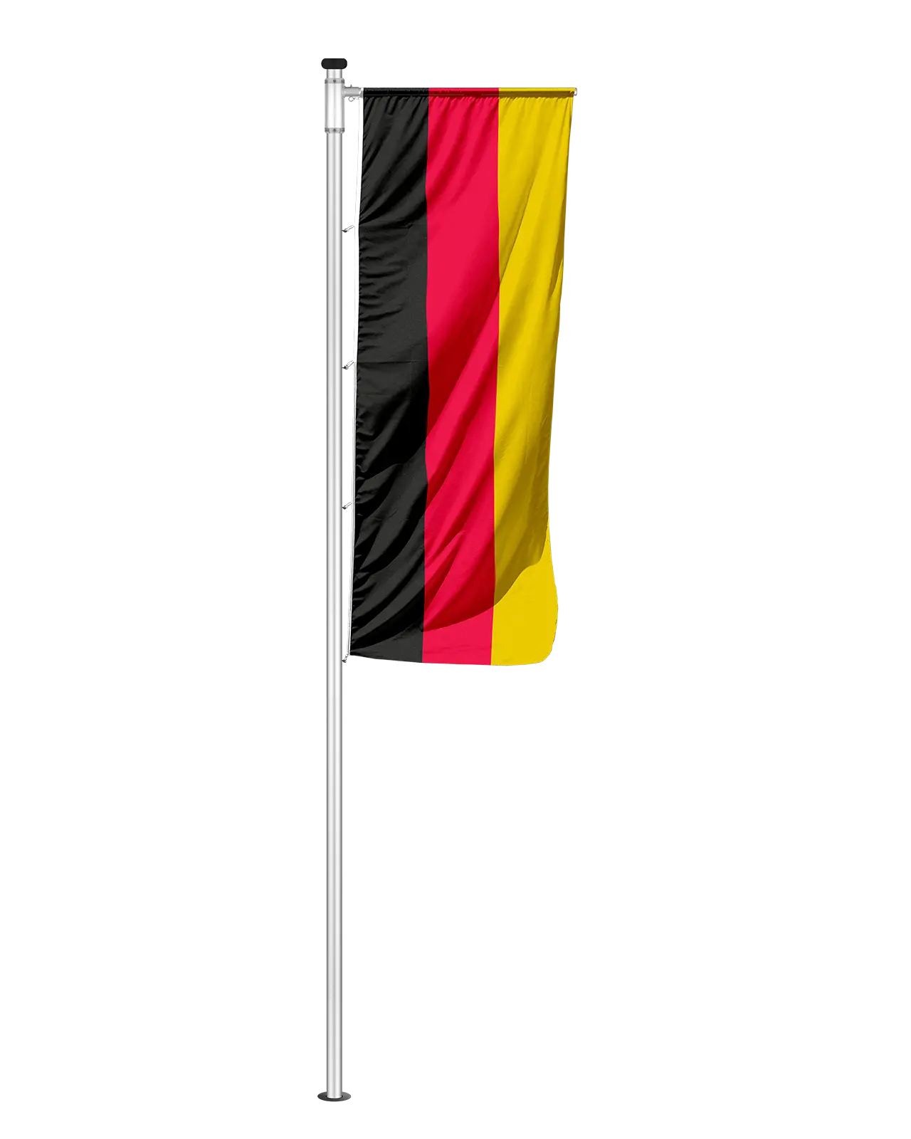 Bannerfahnen stehen für eine besonders ruhige und repräsentative Darstellung. Durch ihre feste Aufhängung bleibt die Nationalflagge auch bei Windstille jederzeit gut sichtbar.