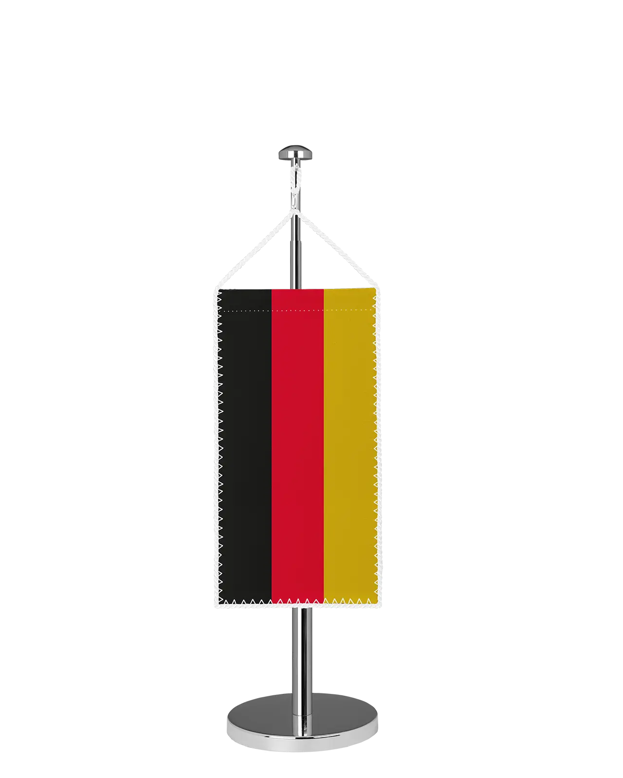 Tischbannerfahnen bieten eine besonders hochwertige und dekorative Möglichkeit, Nationalflaggen im Innenbereich darzustellen. Durch ihre feste Aufhängung wirken sie ruhig, edel und besonders repräsentativ.