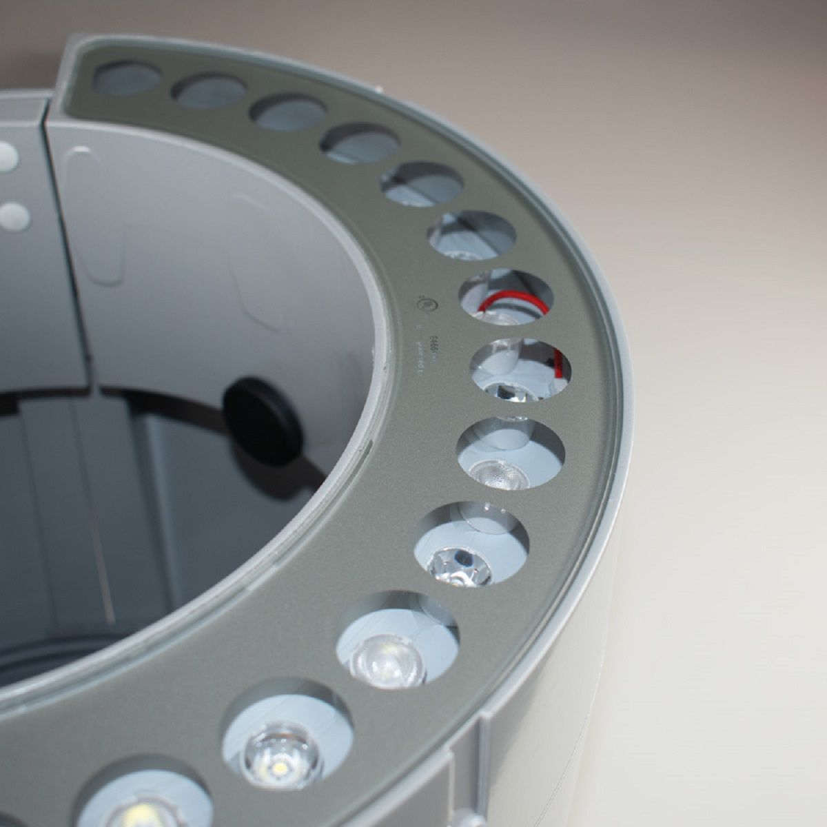 Durch die Schutzklasse IP65 ist das System vollständig staubdicht und gegen Strahlwasser geschützt – perfekt für den ganzjährigen Außeneinsatz. Das integrierte Vorschaltgerät macht die Montage besonders platzsparend und effizient.