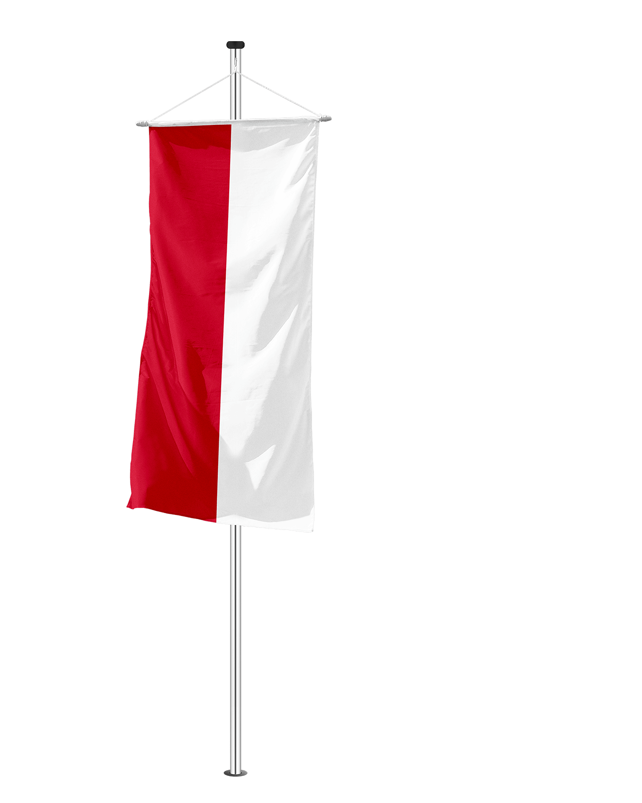 Bannerfahnen stehen für eine besonders ruhige und repräsentative Darstellung. Durch ihre feste Aufhängung bleibt die Nationalflagge auch bei Windstille jederzeit gut sichtbar.