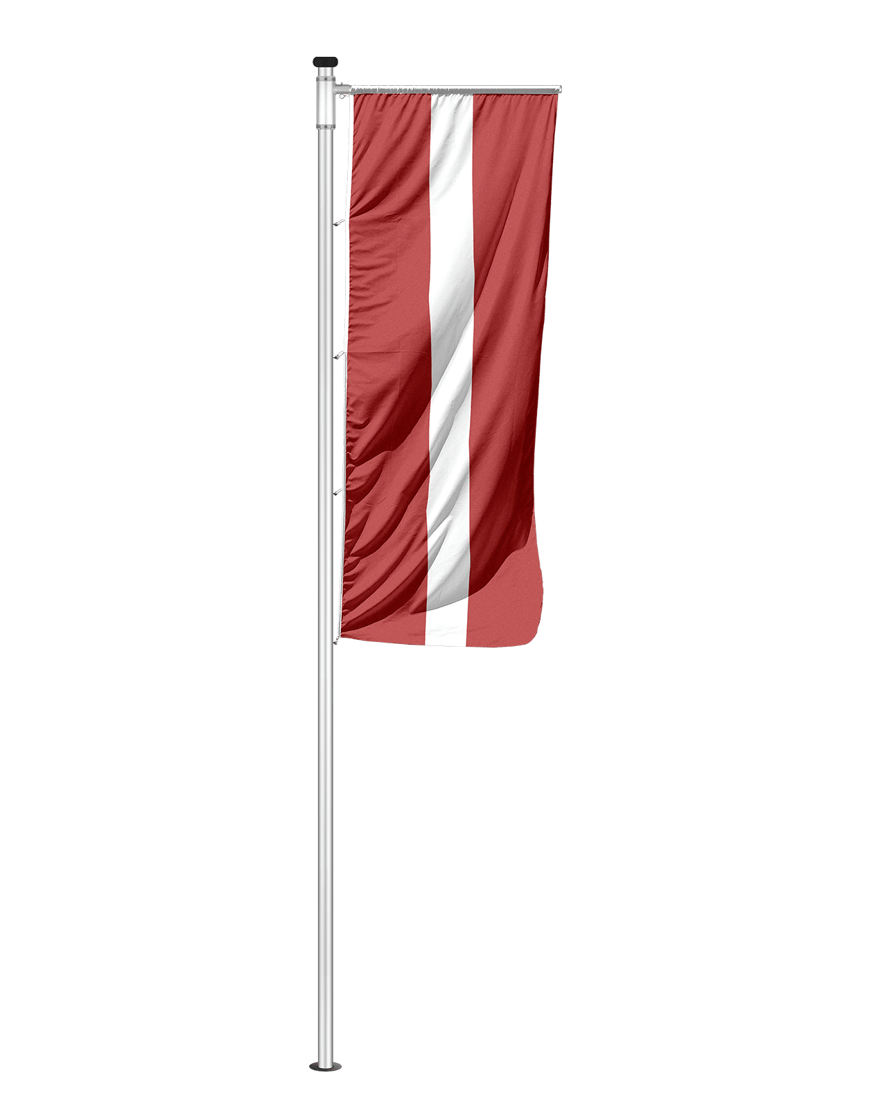 Die Befestigung erfolgt über eine stabile Queraufhängung, optional ergänzt durch eine Ringsicherung. Dadurch bleibt die Flagge auch bei wechselnden Wetterbedingungen sauber in Position und vermittelt einen professionellen Eindruck.