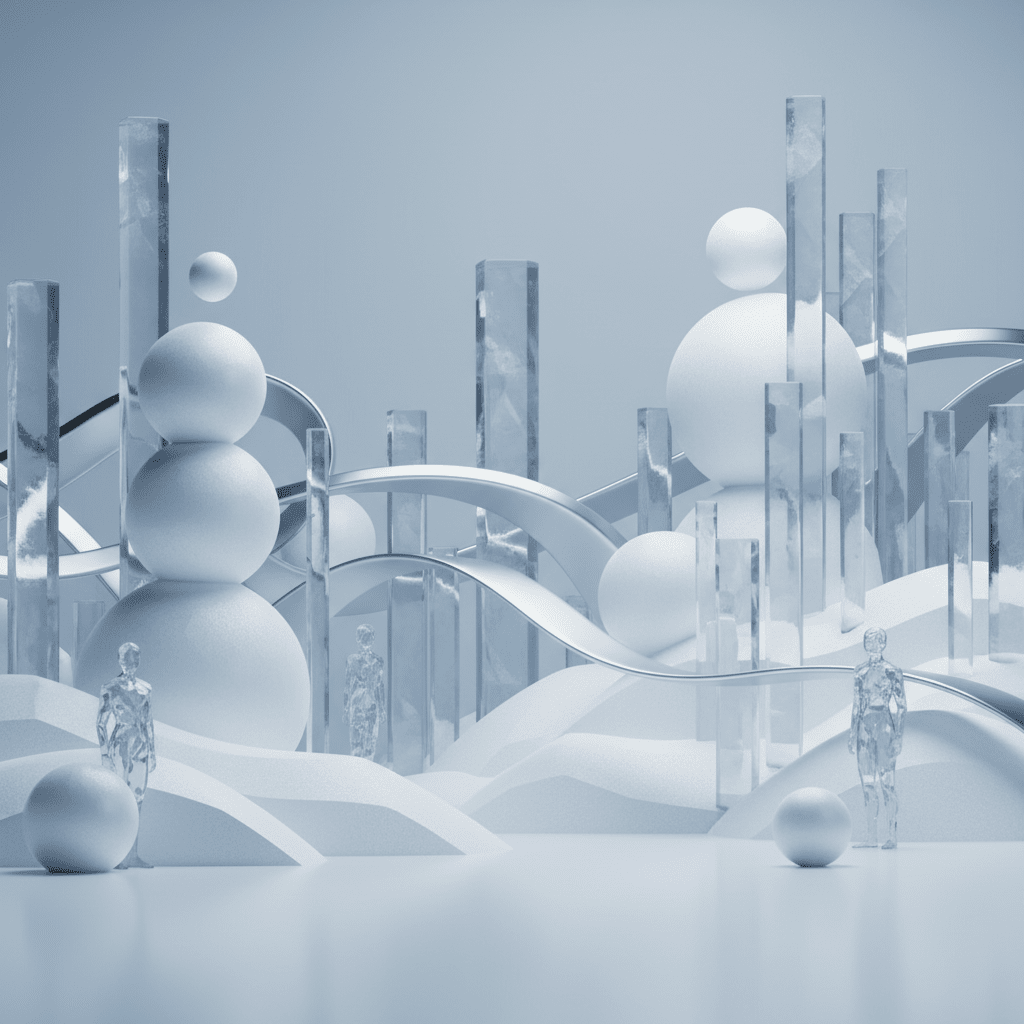 Im Fokus stehen reduzierte Formen und klare Linien. Kugeln, Rechtecke und abstrakte Elemente prägen den Look.