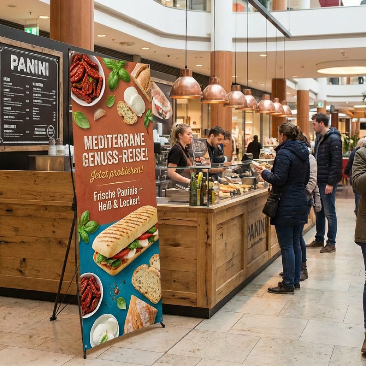 Der X-Banner ist die ideale Lösung für flexible, aufmerksamkeitsstarke Werbung – mobil, kosteneffizient und in Sekunden bereit für Ihren nächsten Markenauftritt.